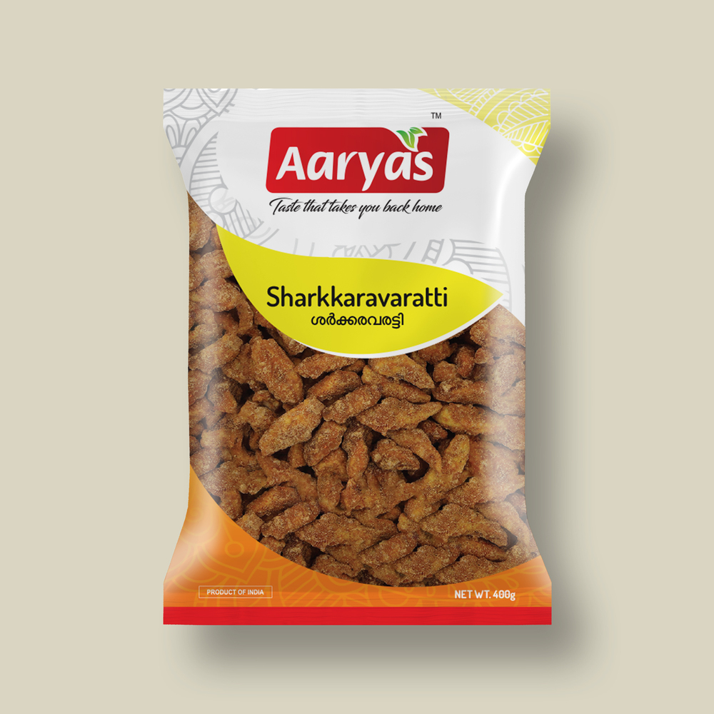 Sharkkaravaratti is a traditional Kerala delicacy made from deep-fried raw banana pieces coated in a luscious mix of jaggery, dry ginger, and cumin. This sweet and spicy snack delivers a perfect balance of crunch, caramelized sweetness, and warm spices. Often enjoyed during festivals like Onam and Vishu, Sharkkaravaratti is a must-have in every Kerala snack platter. Made with natural ingredients and no preservatives—authentic, flavorful, and irresistibly crunchy!
